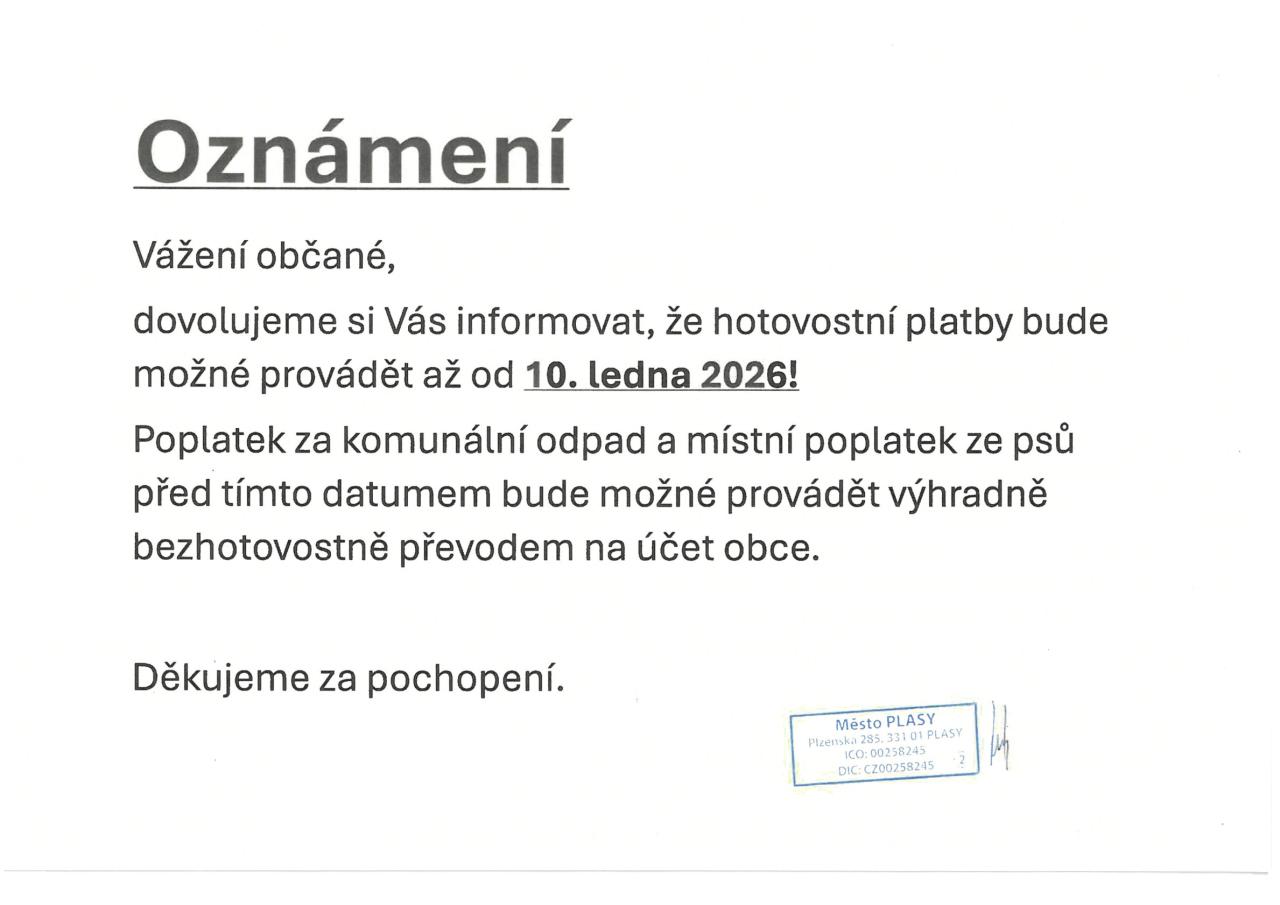 Oznámení o úhradách za komunální odpad - leden 2026