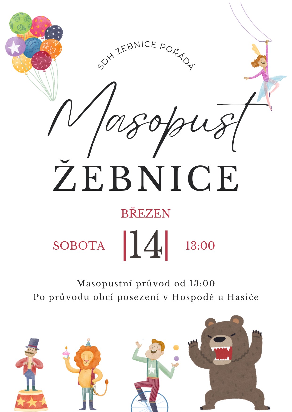 Průvod masek obcí. Po průvodu posezení v hospodě u Hasiče.